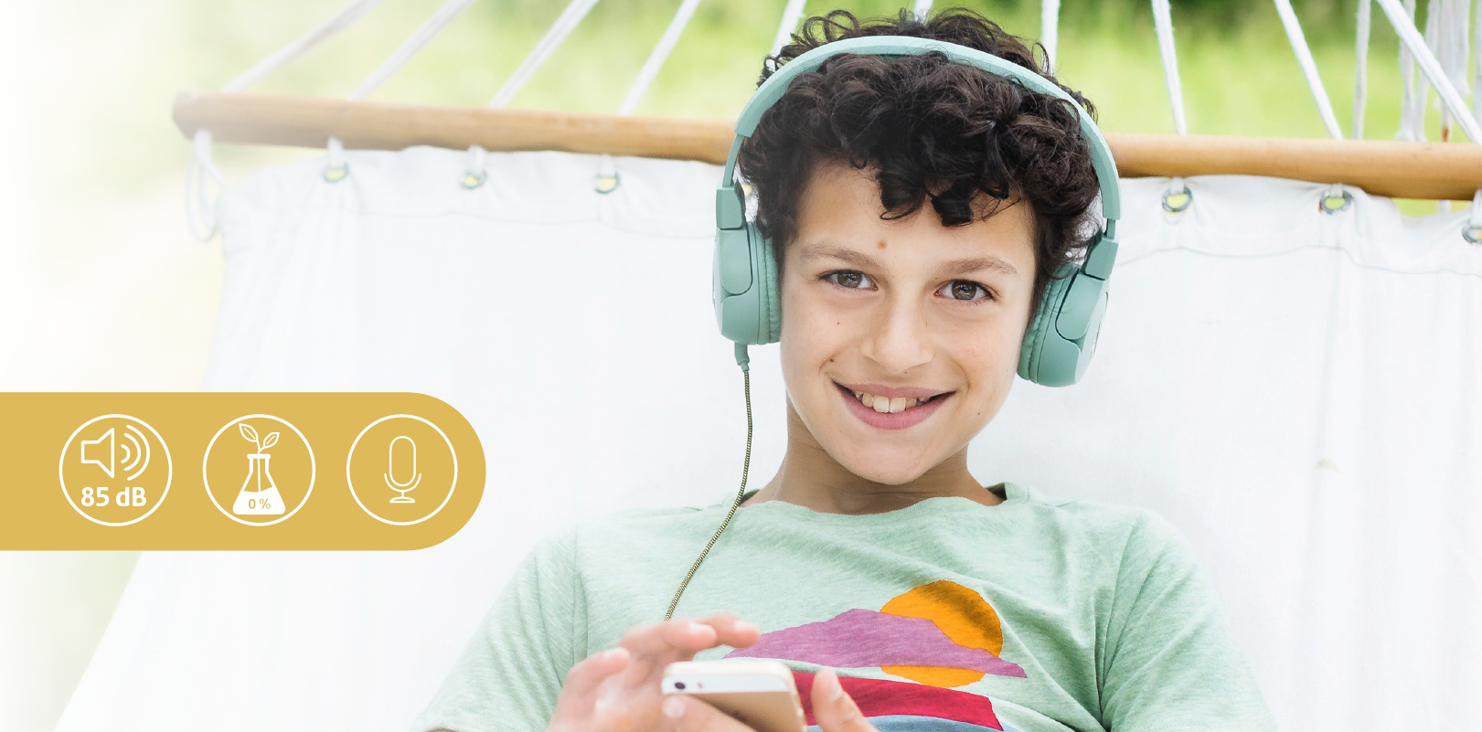 - OreillesProtégées - Volume limité à 85 dB maximum, pour protéger l’audition des enfants.